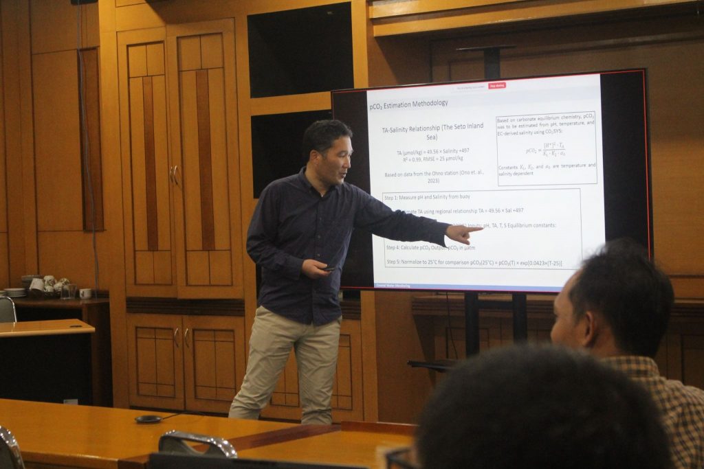 Isu pesisir kembali mengemuka ketika Gandhi Napitupulu mempresentasikan pemanfaatan citra satelit dan kecerdasan buatan untuk memetakan habitat lamun di perairan Jepang. Pendekatan berbasis penginderaan jauh tersebut memungkinkan pemantauan ekosistem pesisir secara lebih efisien dan berkelanjutan. Lamun sebagai bagian dari ekosistem karbon biru dinilai memiliki peran penting dalam menyerap karbon, sehingga penelitian ini menjadi jembatan antara oseanografi, teknologi spasial, dan isu perubahan iklim global.